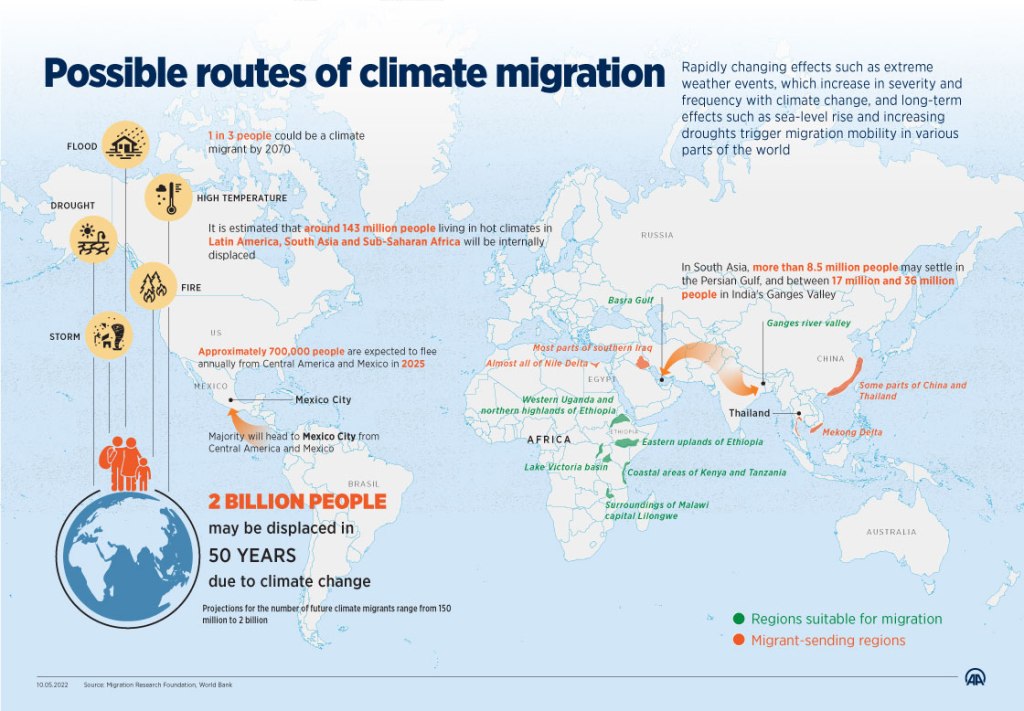“By 2050, over 216 million people could be displaced within their countries due to climate change. What happens when they cross borders?”